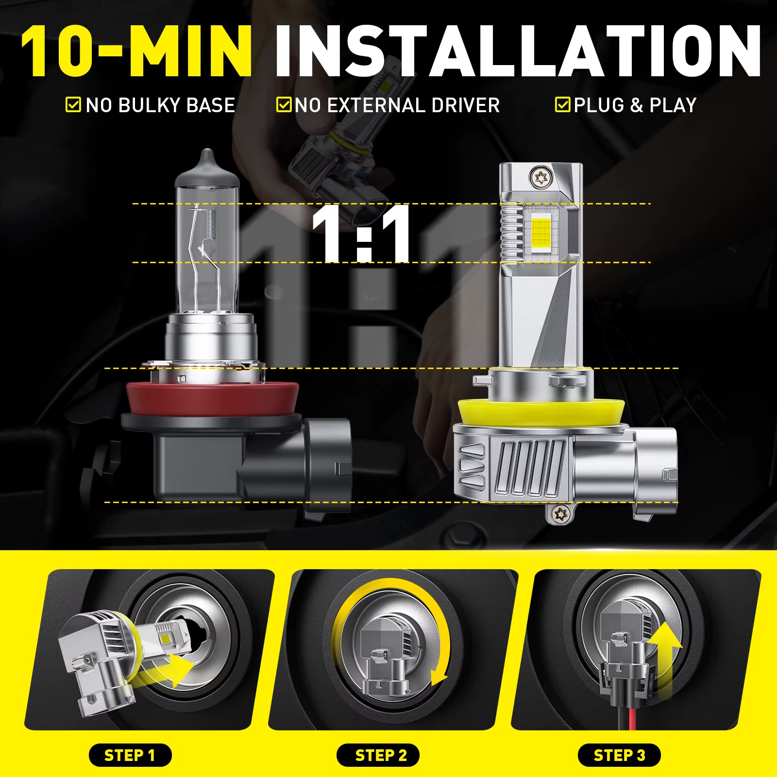 Автолампи H8, H9, H11, H16JP AUXITO A1 6500K 12000Lm 50W 9-18v CANBUS 2 шт.