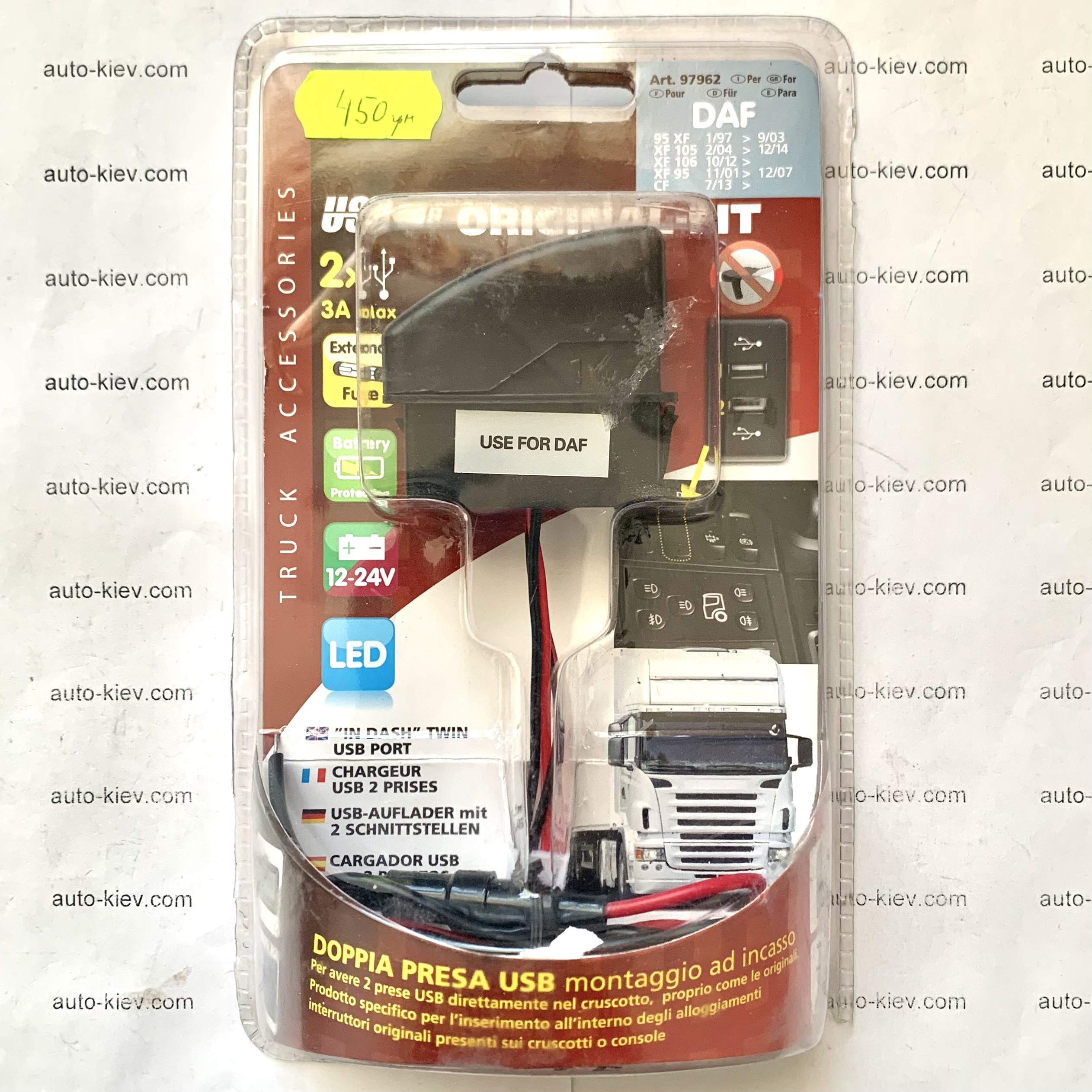 Автозарядка кнопка DAF 2USB 3A 12-24V для встановлення замість кнопки в авто DAF