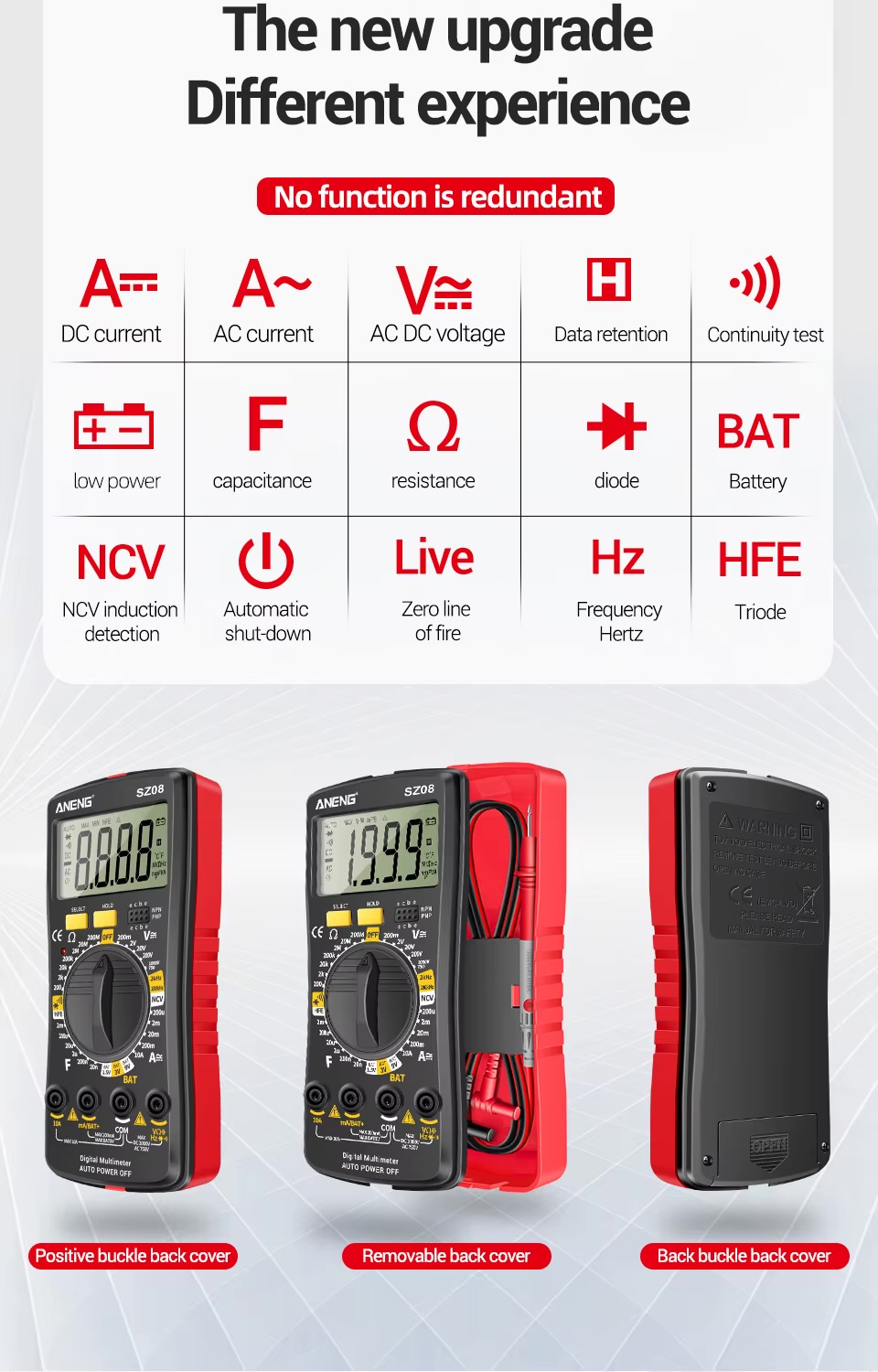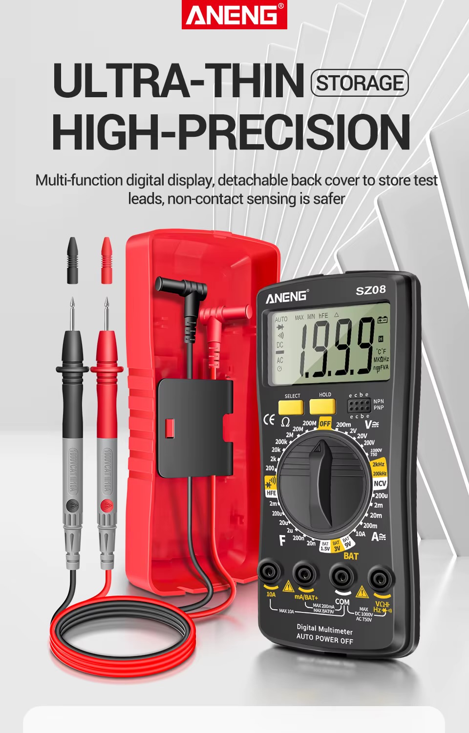 Мультиметр ANENG SZ08 цифровий вольтметр постійного та змінного струму, тестер напруги, опору, ємності, діода, Гц