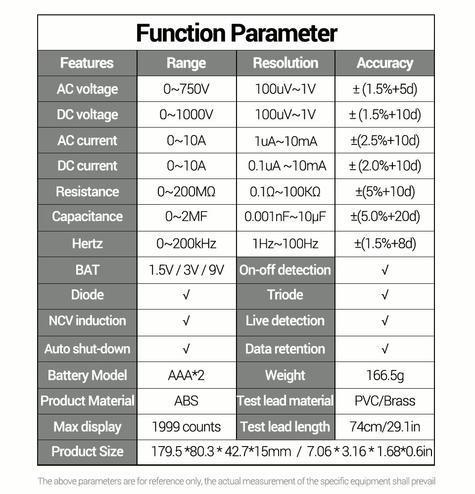 Діапазон вимірювання ємності 20nF/200nF/2uF/20uF/200uF/2mF
