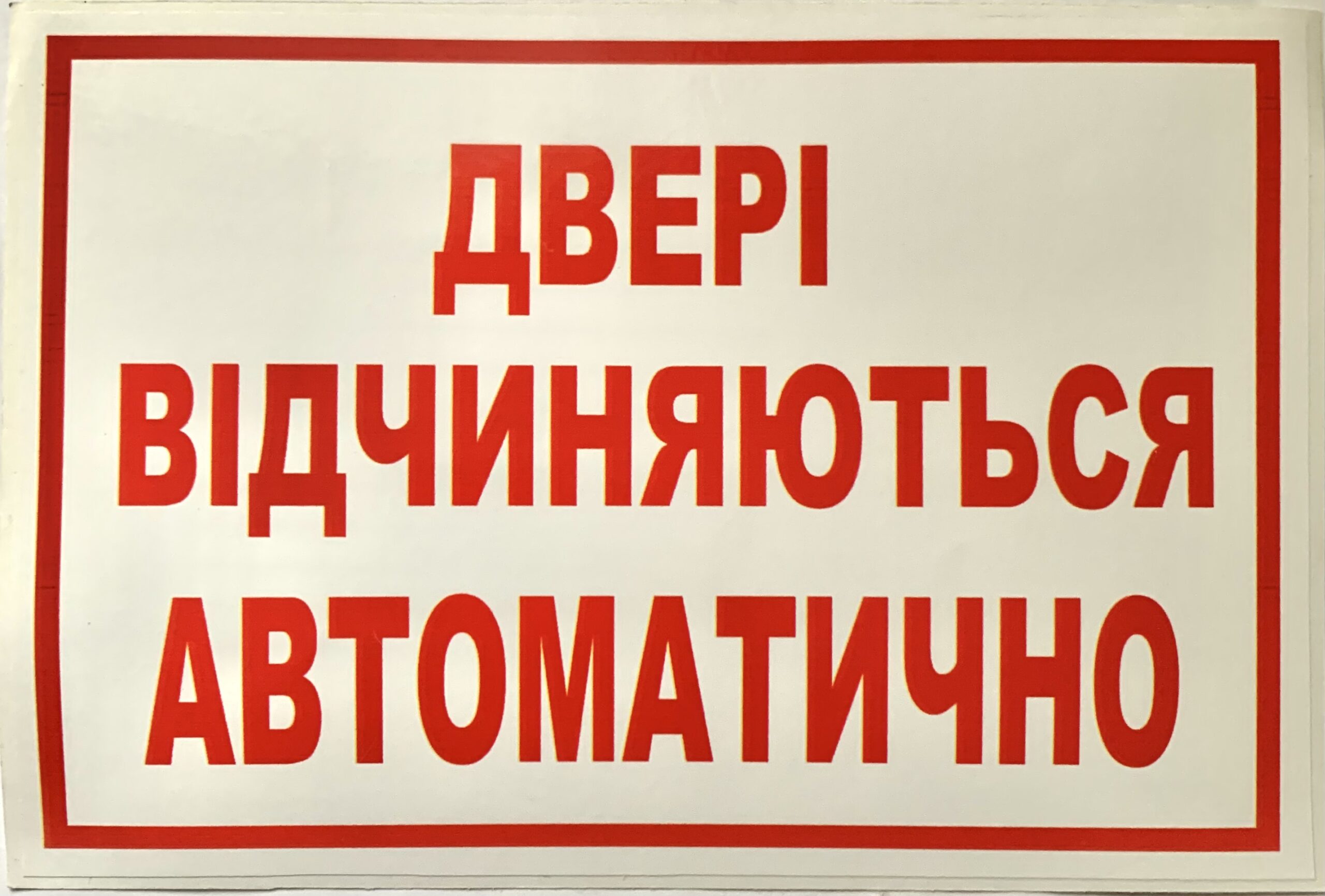 Наклейка “ДВЕРІ ВІДЧИНЯЮТЬСЯ АВТОМАТИЧНО” самоклейка оракал (20 см*13 см) 1 шт.