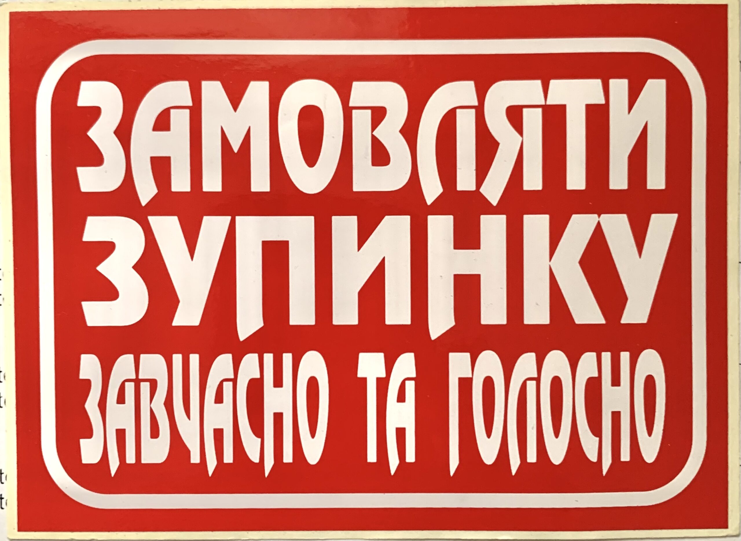 Наклейка “ЗАМОВЛЯТИ ЗУПИНКУ завчасно та голосно” самоклейка оракал (13 см*9.5 см) 1 шт.