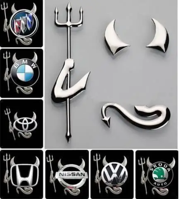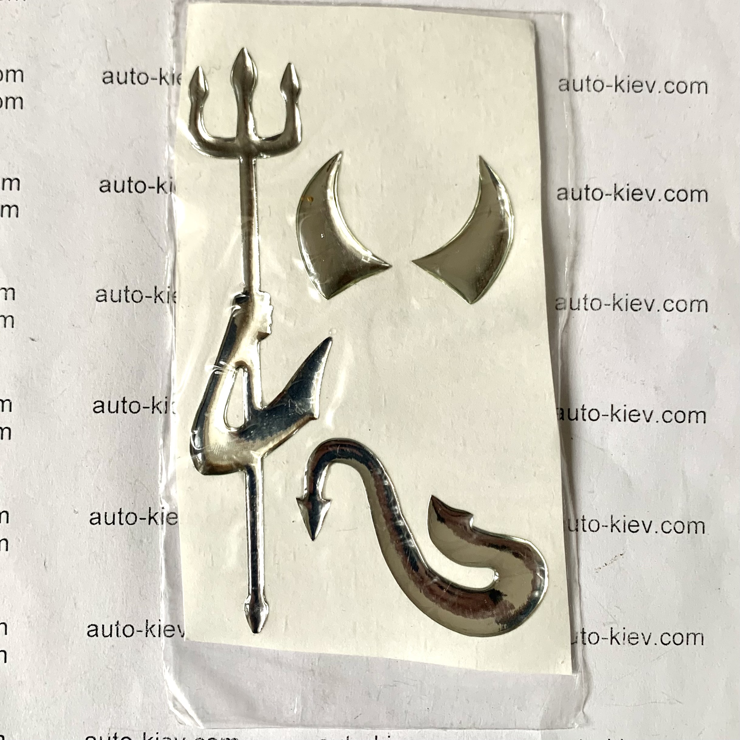 Наклейка на значок авто “Рожки, хвіст ,тризуб” 3d силікон.