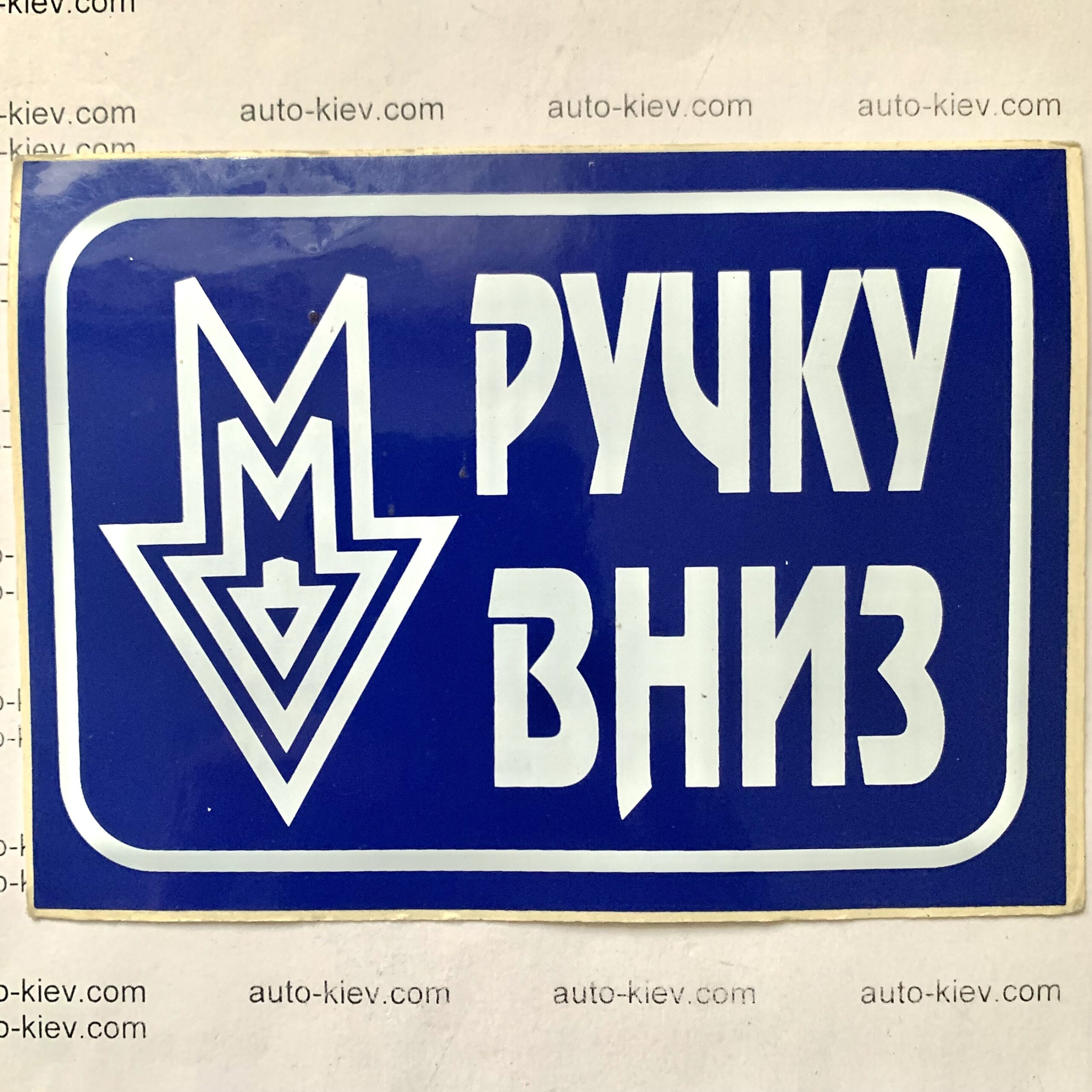 Наклейка “РУЧКУ ВНИЗ” самоклейка оракал (13 см*9.5 см) 1 шт.