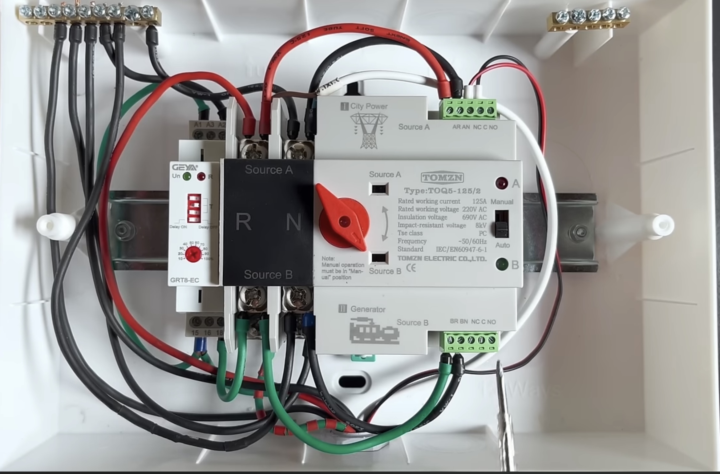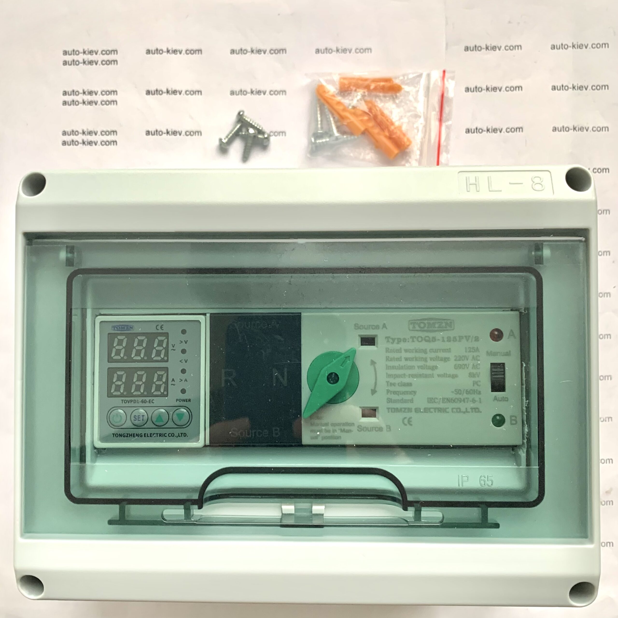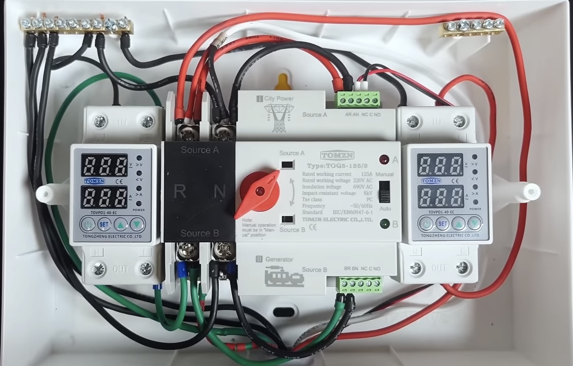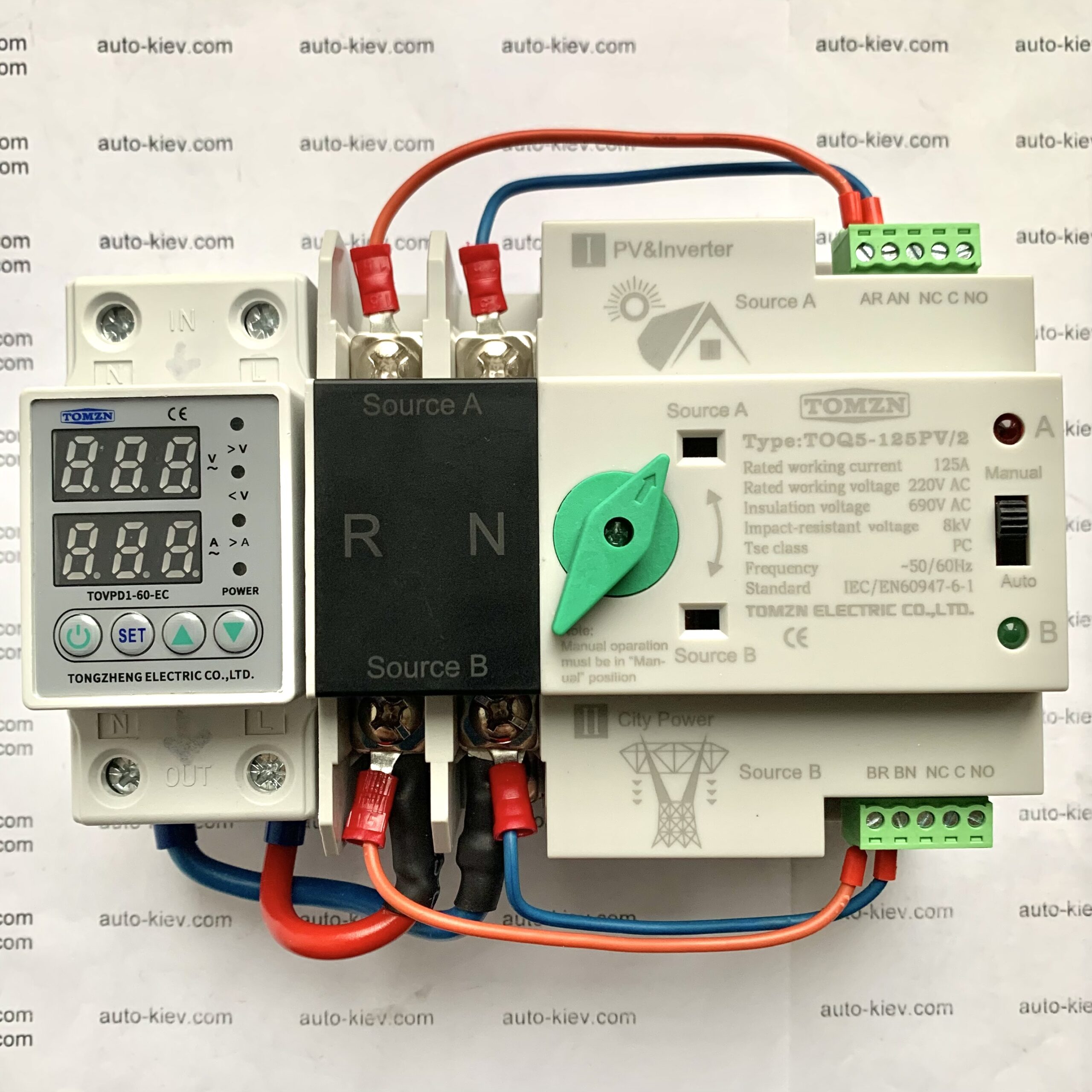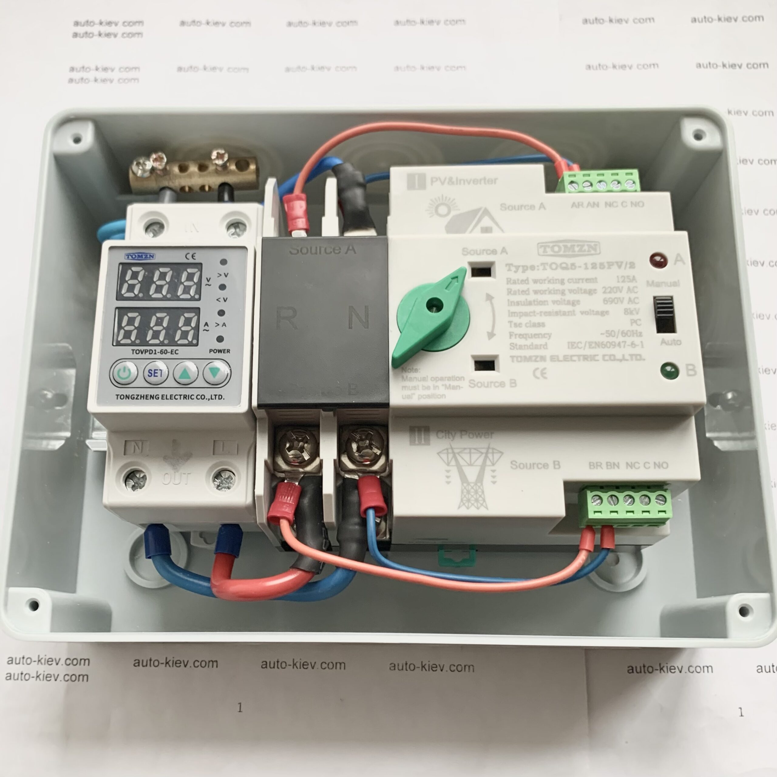 Щит для автоматичного вводу резерву та зарядки інверторів/зарядних станцій типу EcoFlow/Bluetti/Jackery на базі АВР TOMZN TOQ5-125А и реле напряжения TOMZN TOVPD1-60-EC