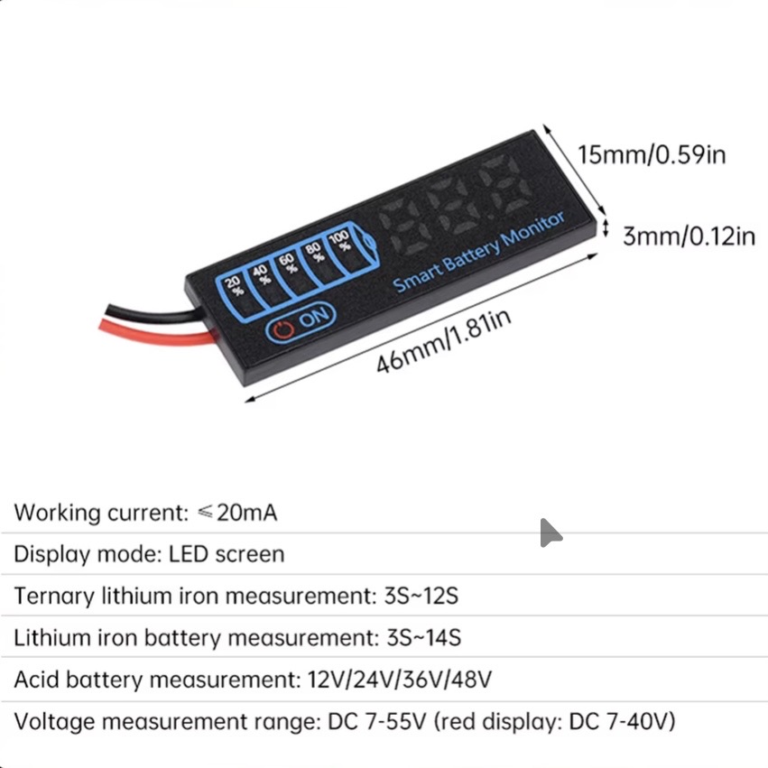 7-55 В постійного струму, універсальна панель індикатора заряду батареї, світлодіодний індикатор, кислотна батарея, індикатор напруги заряду літієвої батареї.