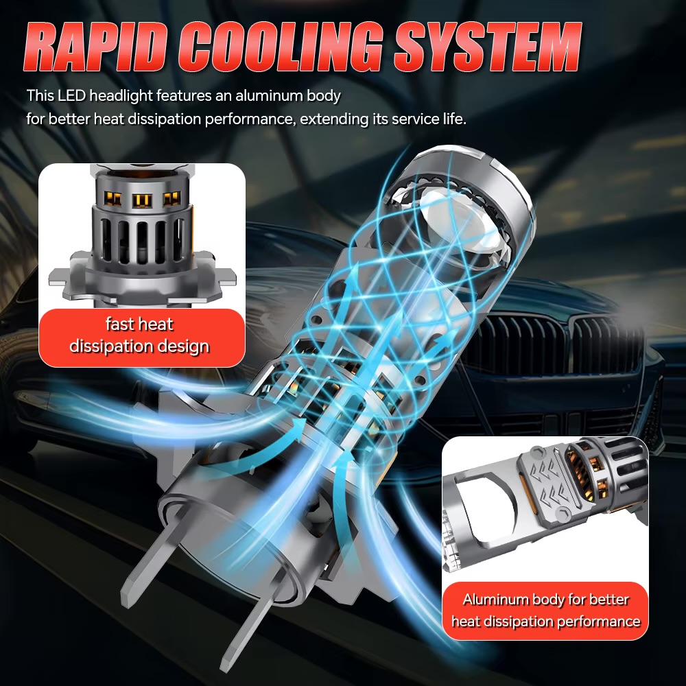 H7 Світлодіодна фара з міні-об’єктивом. Світлодіодна лампа для проектора Canbus Mini Lens Turbo Fan. Лампа далекого ближнього світла для автомобілів.