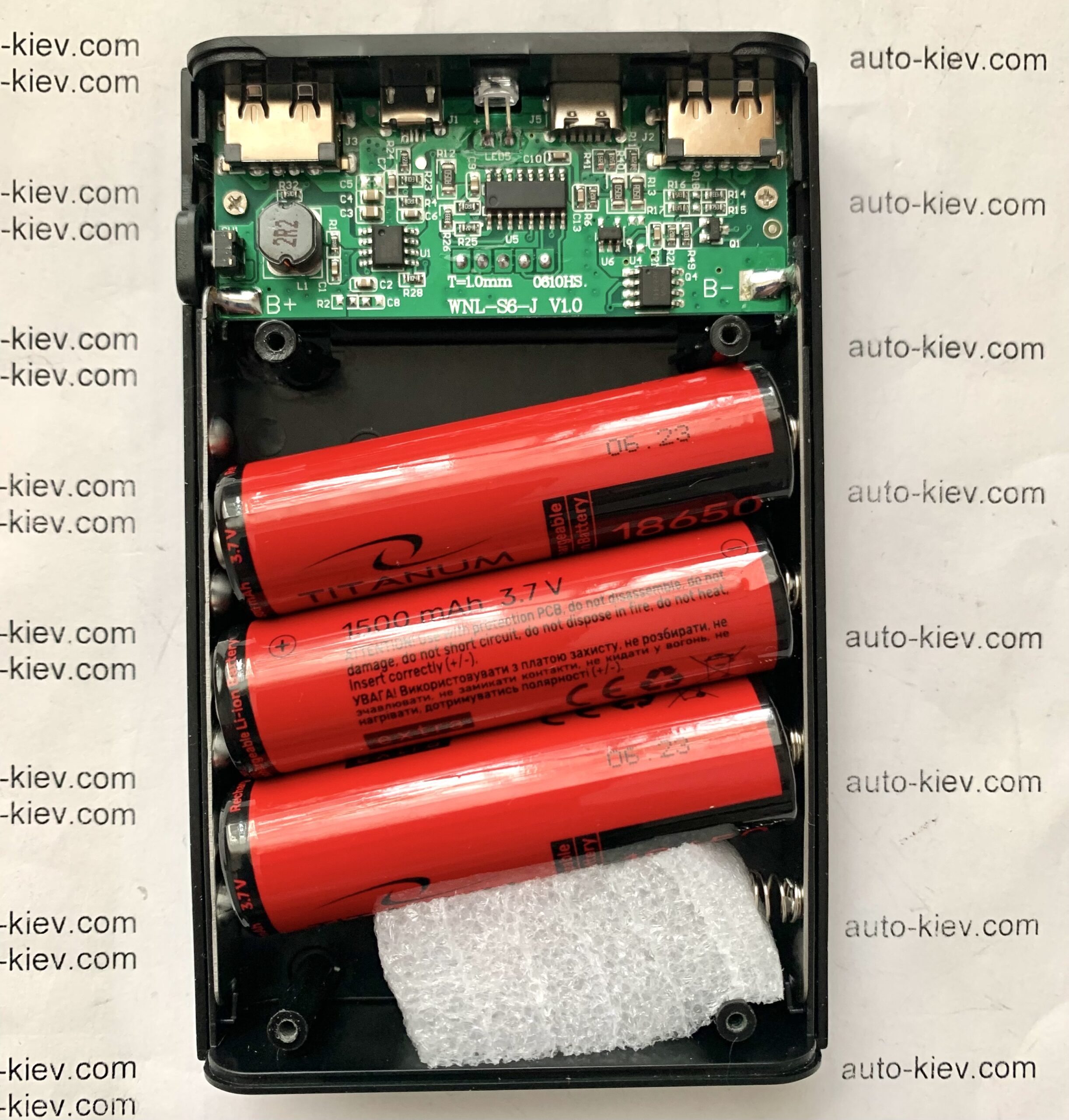 Можна встановити 4 літієві батареї 18650.